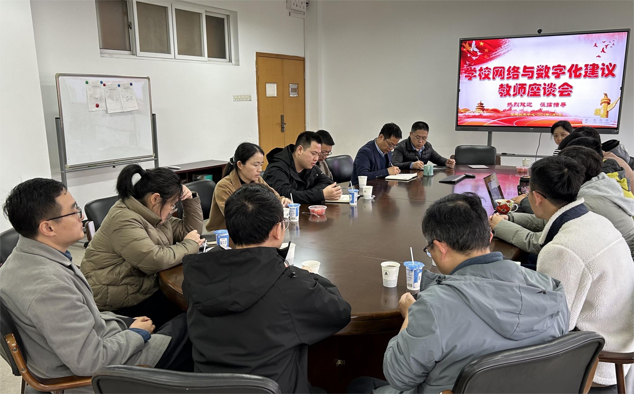 为更好地提升信息技术中心的服务水平,在校工会的大力协助下,4月8日中午我中心组织了一场学校网络与数字化建议教师座谈会,计财处、后勤、校工会、机电工程学院、理学院、信息工程学院、能源环境与安全工程学院等相关学院(部门)老师参加了此次会议。