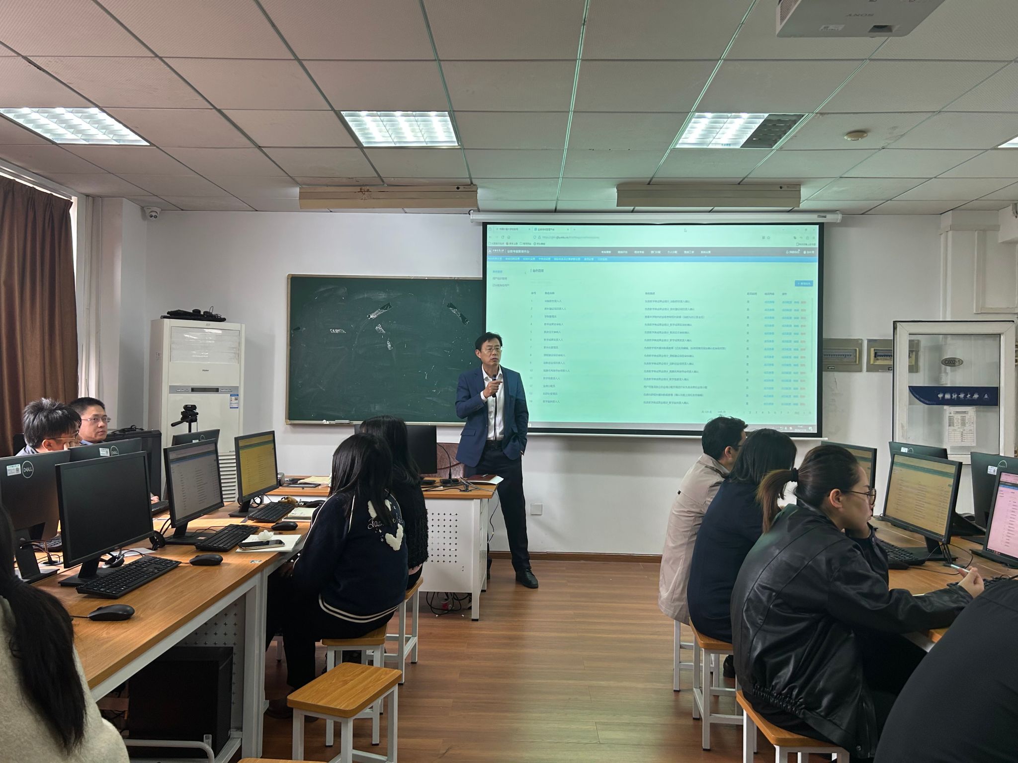 11月18日上午,中国计量大学业绩考核管理平台培训会在求是北楼机房顺利完成,校党委委员、副校长王新庆出席会议。本次培训由发展规划处、校办负责组织协调,信息技术中心提供协助。各学院办公室主任、科研秘书、教学秘书,以及学校办公室、科研院、人事处、教务处、研究生院、发规处、信息中心等部门人员参加会议。