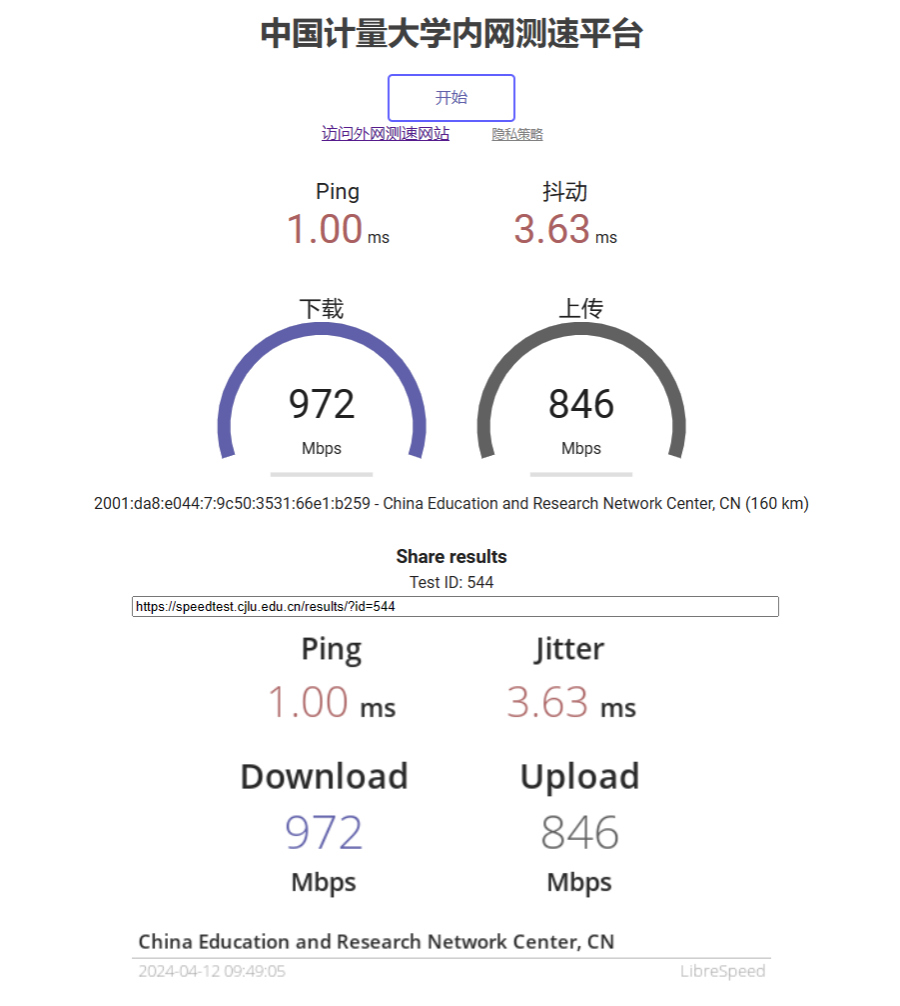 1. 内网测试:可通过中国计量大学内网测速平台(https://speedtest.cjlu.edu.cn),测试内网访问速度。