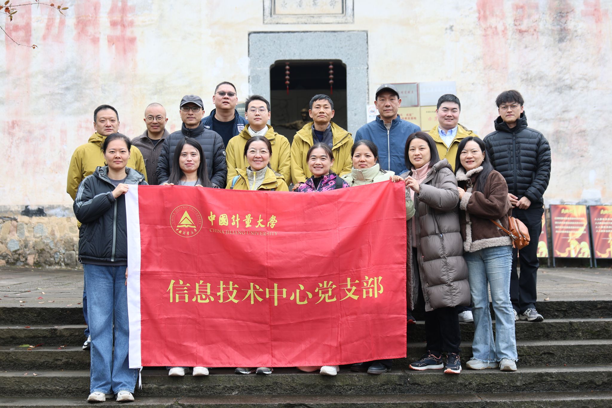 2025年12月3日,信息技术中心党支部组织全体同志前往余杭区鸬鸟镇的新四军随军被服厂旧址,开展“追寻红色足迹,牢记初心使命”主题党日活动。