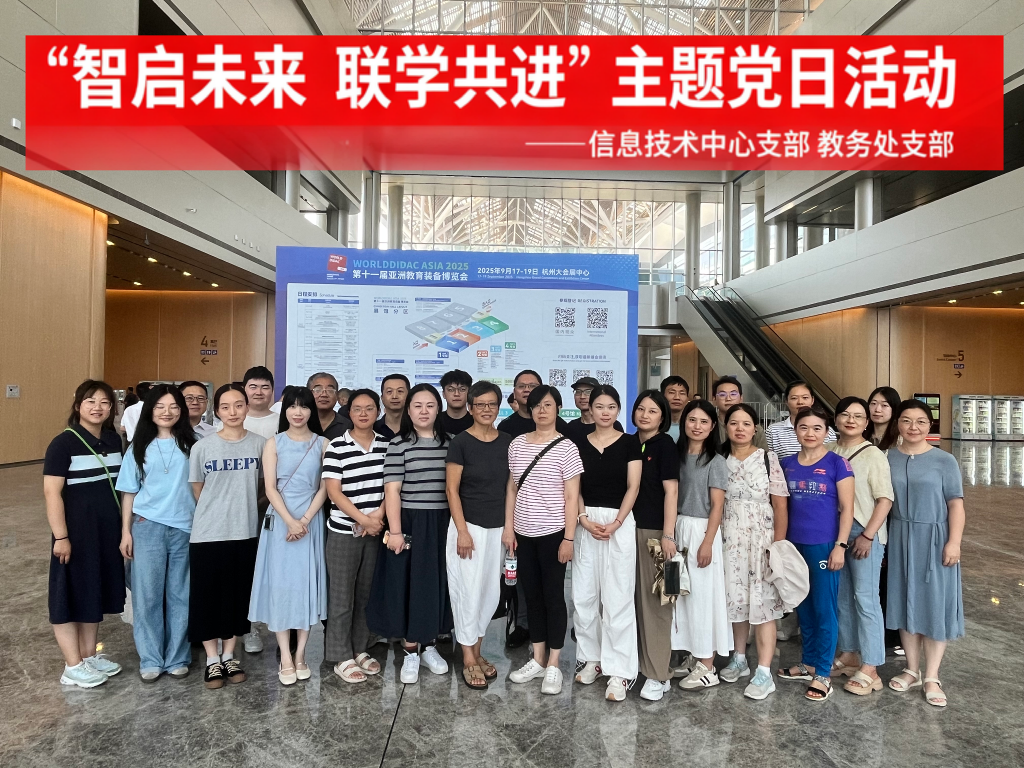 2025年9月17日,信息技术中心支部联合教务处支部赴杭州大会展中心开展“智启未来、联学共进”主题党日活动,27名党员教师共同参观第十一届亚洲教育装备博览会,实地探访教育数字化转型前沿成果。